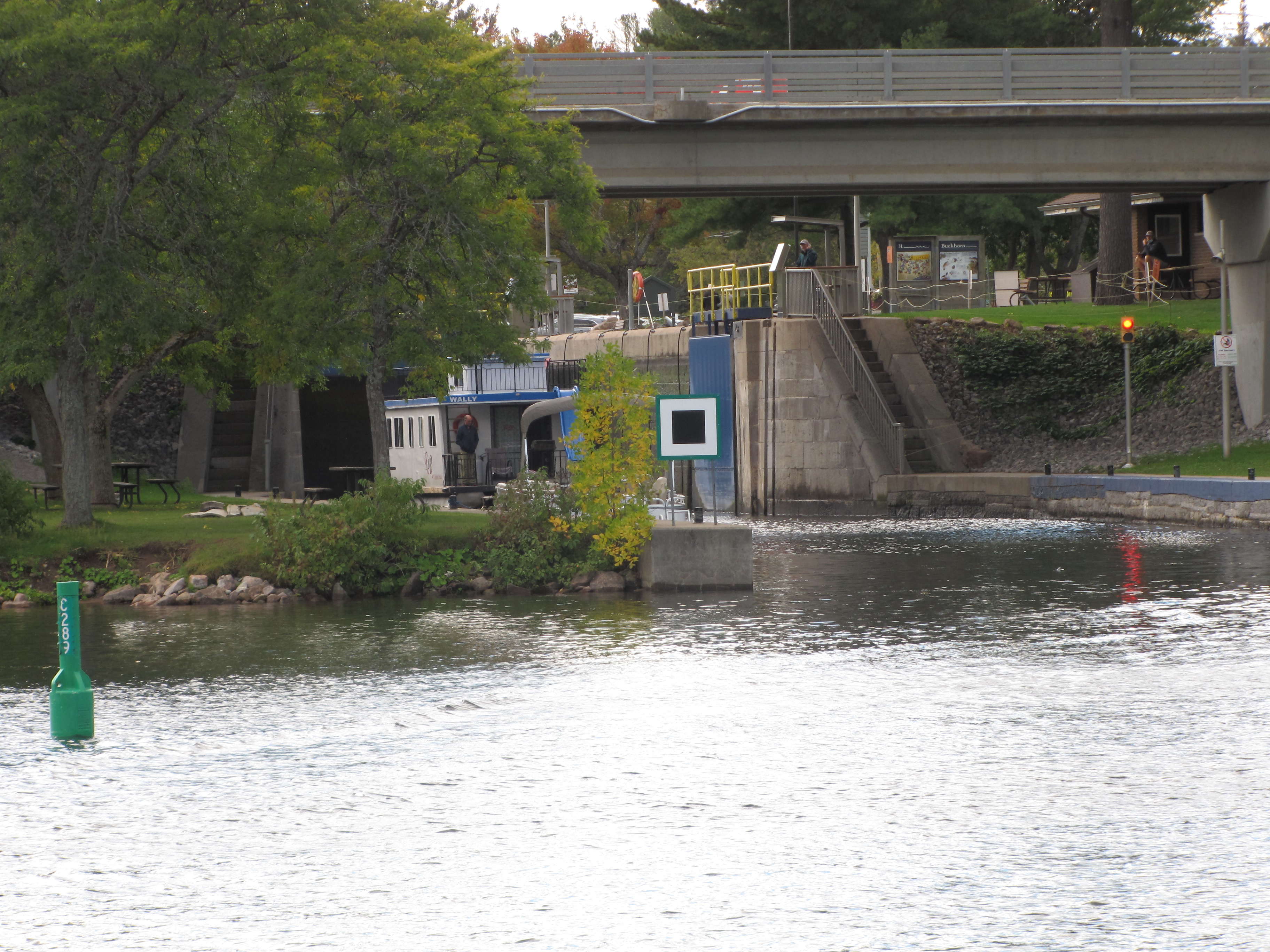 We left Friday morning on the first lift down, and were out of Swift Rapids by 9:10. We proceeded to the Big Chute where we found Heart Tug and New Song on the wooden docks.