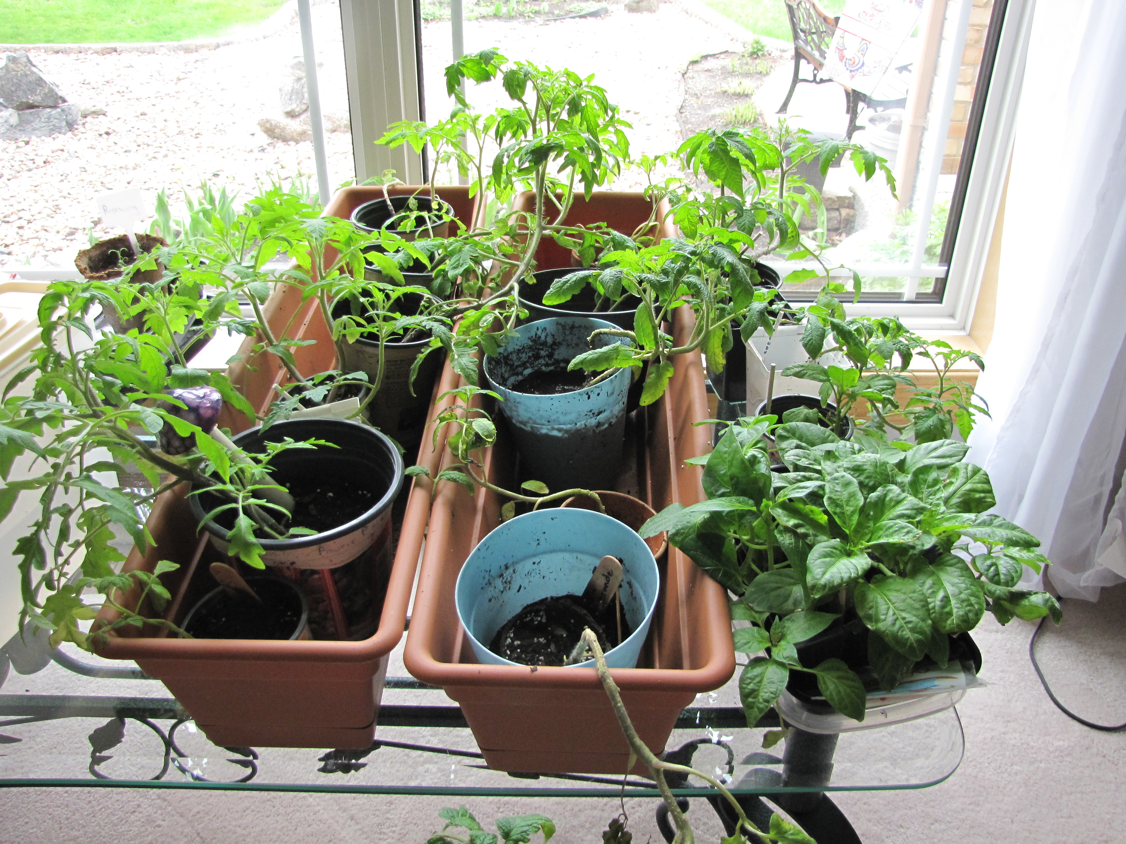 we had one more dump of snow a few days later during the Easter weekend. To melt the huge piles of snow we had about 5 or 6 really nice days, but the weather has gone downhill from there. We’ve been in a cycle where we may have one nice day a week, followed by 4 or 5 days of rain. A great deal of the farm land in Manitoba is under water, or too wet to take any heavy equipment on it. Early in March I planted some tomatoes (about 50 of 7 different varieties) and peppers for my garden, but the half I didn’t give away are still residing in my living room.