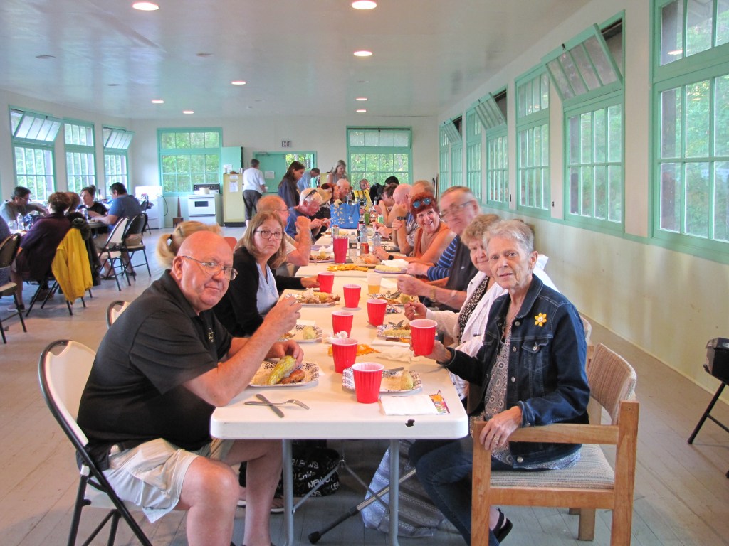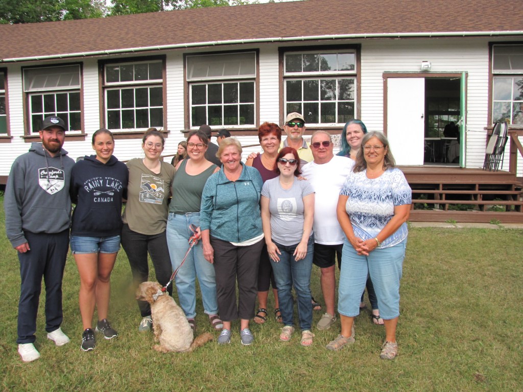 Each person was responsible for bringing their own dinnerware and cutlery, so we only had to clean up the electric roasters and utensils used for cooking the chilli. Somehow, I managed to get red stains all over the white shirt I was wearing—I had brought my McMorland apron, but had failed to bring it to the rec hall. Lots of visiting happened during the evening. We left by about 10, and went to our cabin. Around 3:30 a.m., most everyone was woken up by the passing thunderstorm, and a very large bang, that almost sounded like a gun shot, but was one of the transformers at the park struck by lightening. This was followed by a second bang and a second transformer being blown. The result of the storm, left us without power or water—so our flush toilets were inoperable. In the morning once it was light, Andy tried to call Manitoba Hydro to report the outage—this was a feat in itself, as the cell coverage at Camp Morton was very weak and spotty. When Andy finally got in touch with someone, they asked what the meter number or account number was—we didn’t have a clue and didn’t know where to find it. Shortly after 8:00, our power was restored to the cabins, however it would be another couple hours before the water was restored. Thankfully there were some outhouses at the park. For breakfast, the menu was pancakes and sausages, and these were cooked on the outdoor grill. During the morning, a crib tournament was held for those that were interested. Andy participated and made it to the quarter-finals, Wenda was crowned the winner.