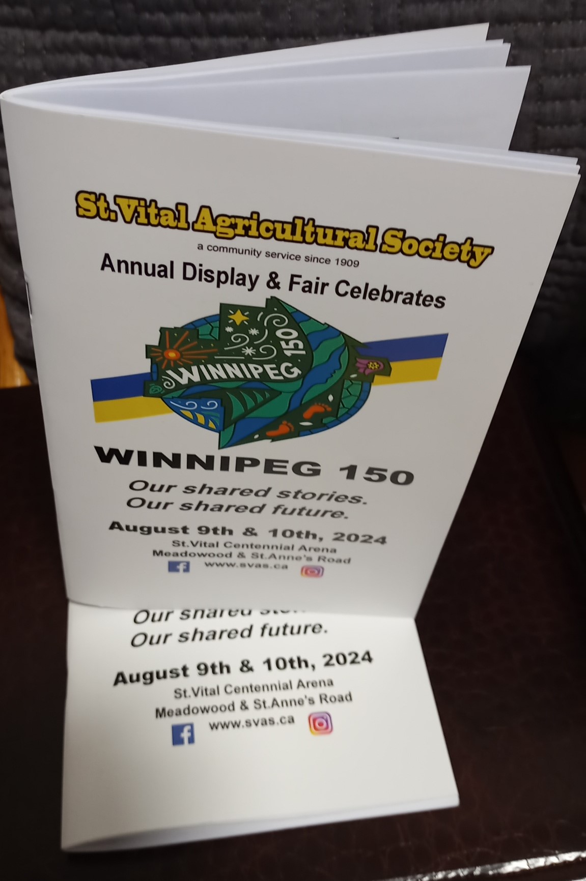 I am also a director on the St. Vital Agricultural society, and since I will rarely be around for the annual August fair, I took on the role of producing the fair book handout. I was guided through this process by Val Johnson, a former member of the board, who had done it for many years. I needed to contact and solicit advertisers, as well as update and replace information. Here’s what the finished product looks like.