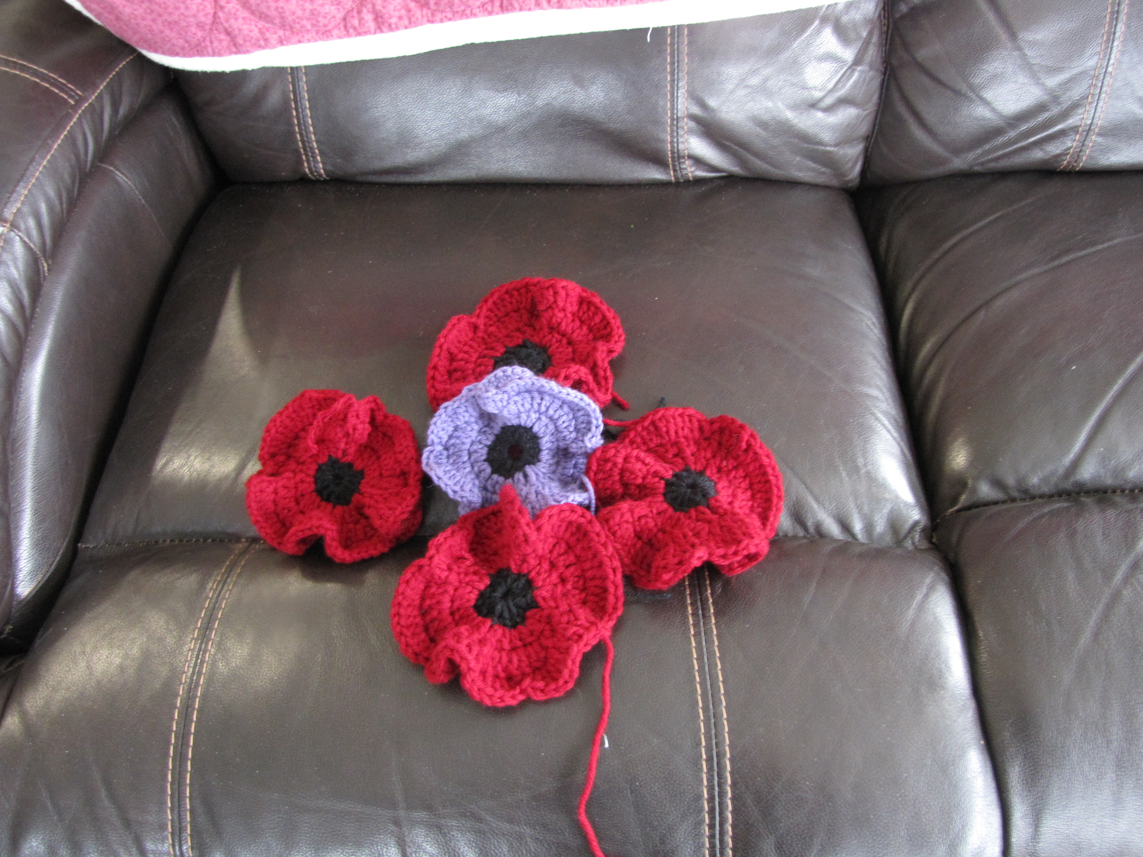 Our group is now making poppies for a remembrance day display later in the year. And who says all poppies need to be red— I made the outlier which represents animal victims of war.