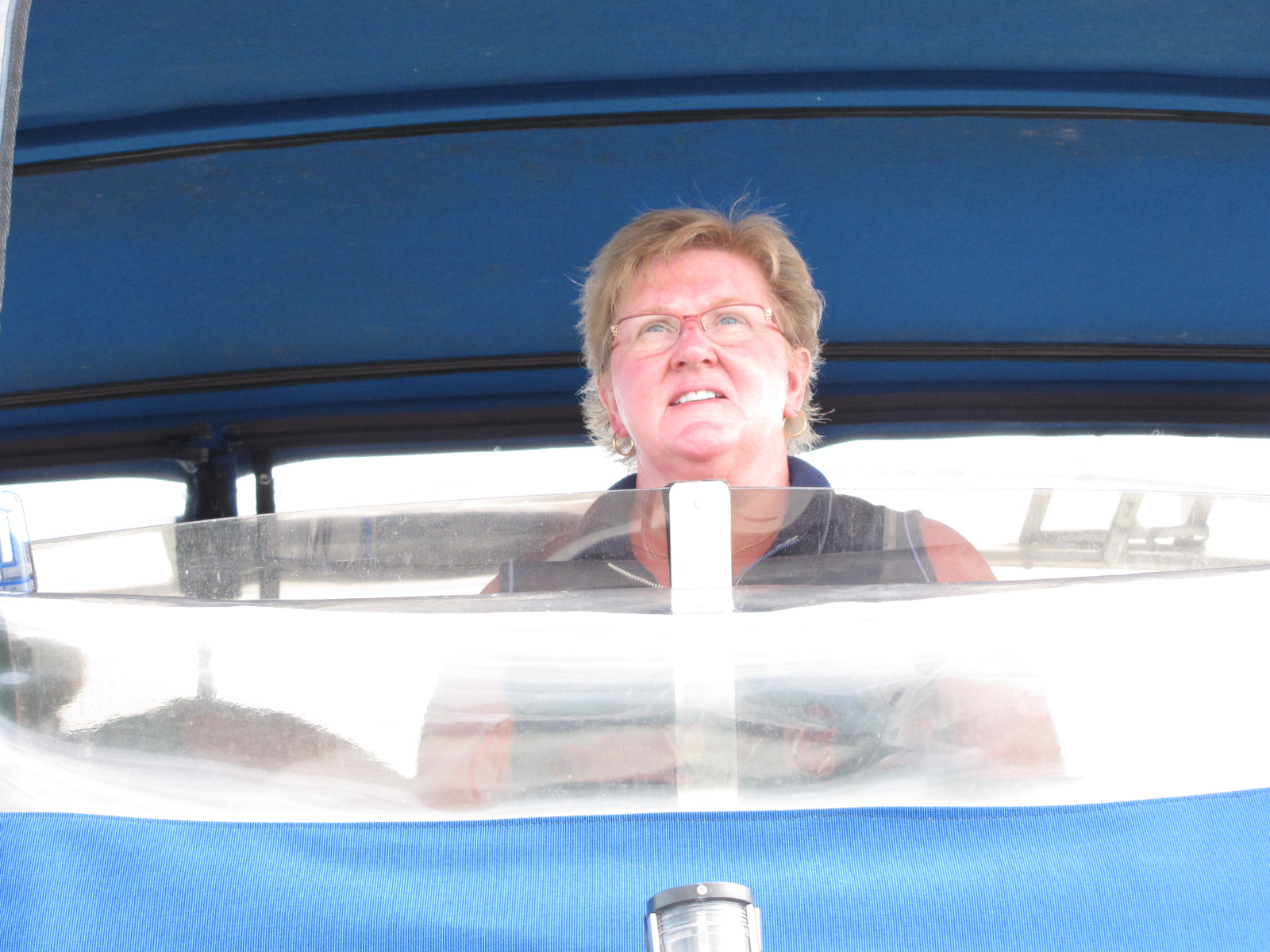 Here’s Pat and Dave at the helm on the run from Britt to Sans Souci Island